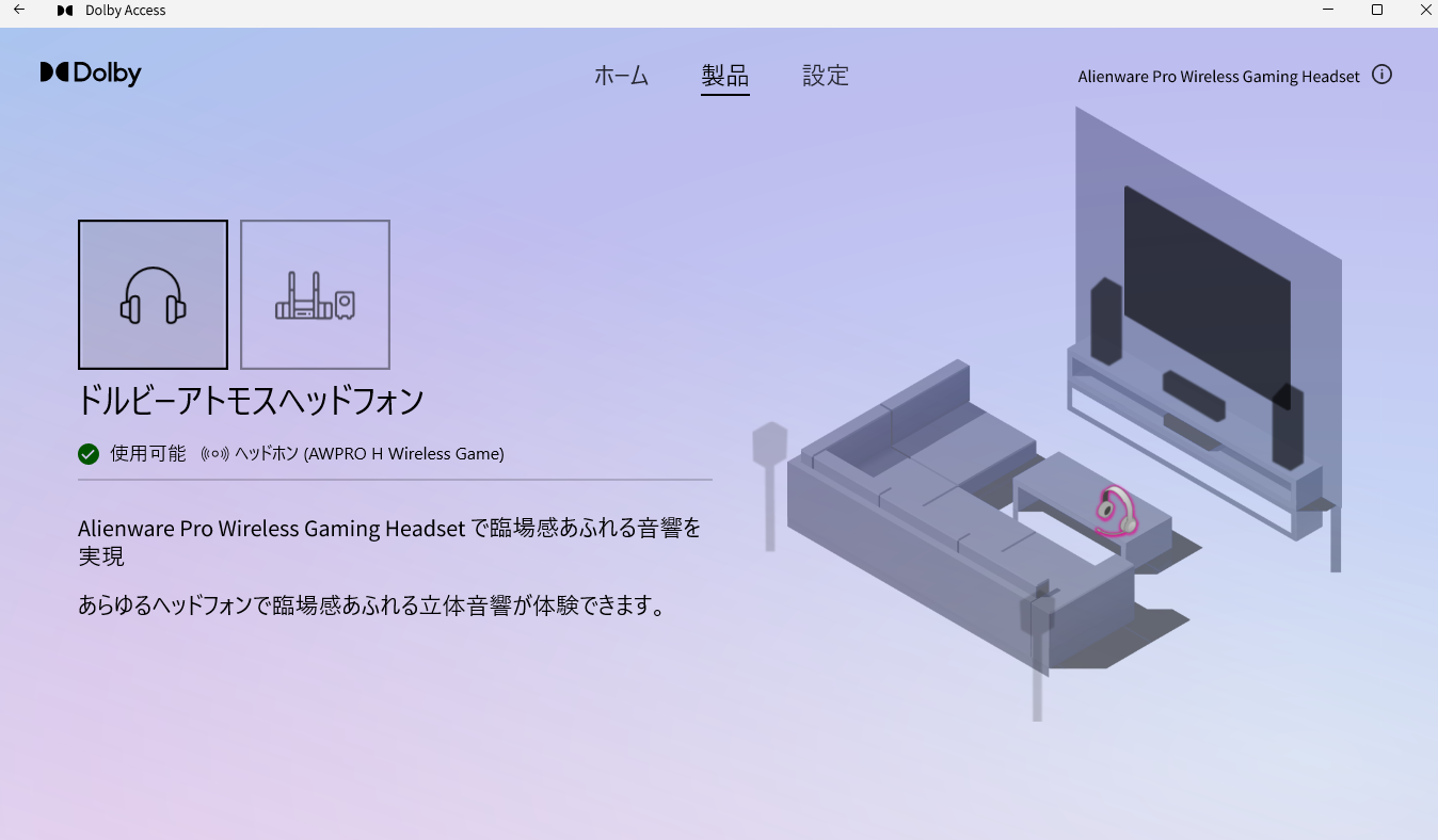 立体音響の調整は、Microsoft Storeから、dolby atmos用のソフト、